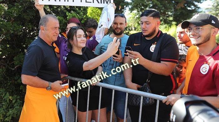 İdman öncesi Galatasaraylı taraftarlaırn yanına giden Terim fotoğraf isteklerini geri çevirmedi.