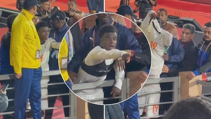 Fildişi Sahili'nin Gabon'u 3-2 mağlup ettiği karşılaşmanın ardından annesine formasını vermek isteyen Trabzonspor'un yıldız oyuncusu Christ Oulai'ye güvenlik engel oldu.